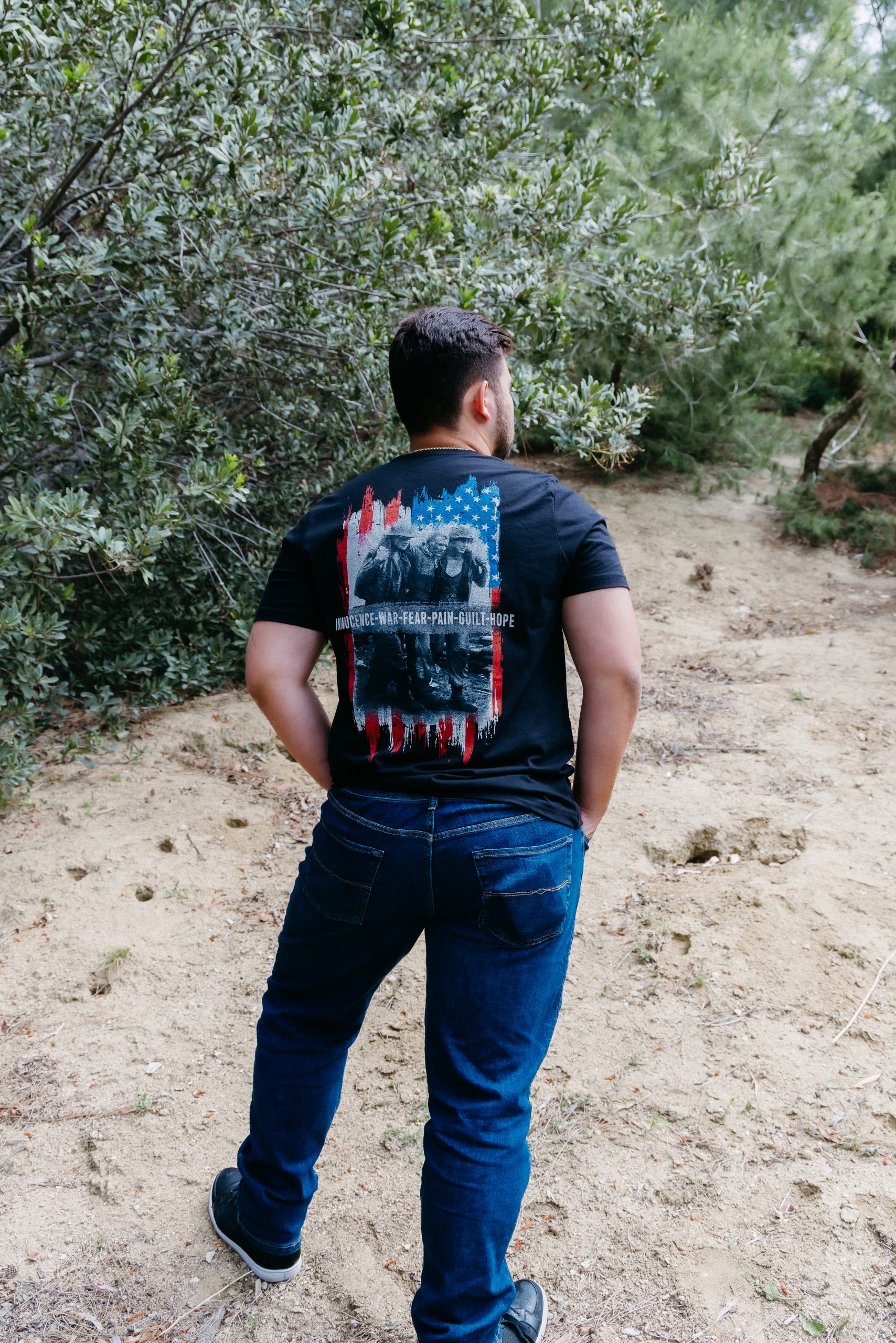 The American Flag T-Shirt features a back screen print. Product with a purpose! All proceeds go to supporting Somebody Loves You Radio with Raul Ries and the teaching of God’s Word.