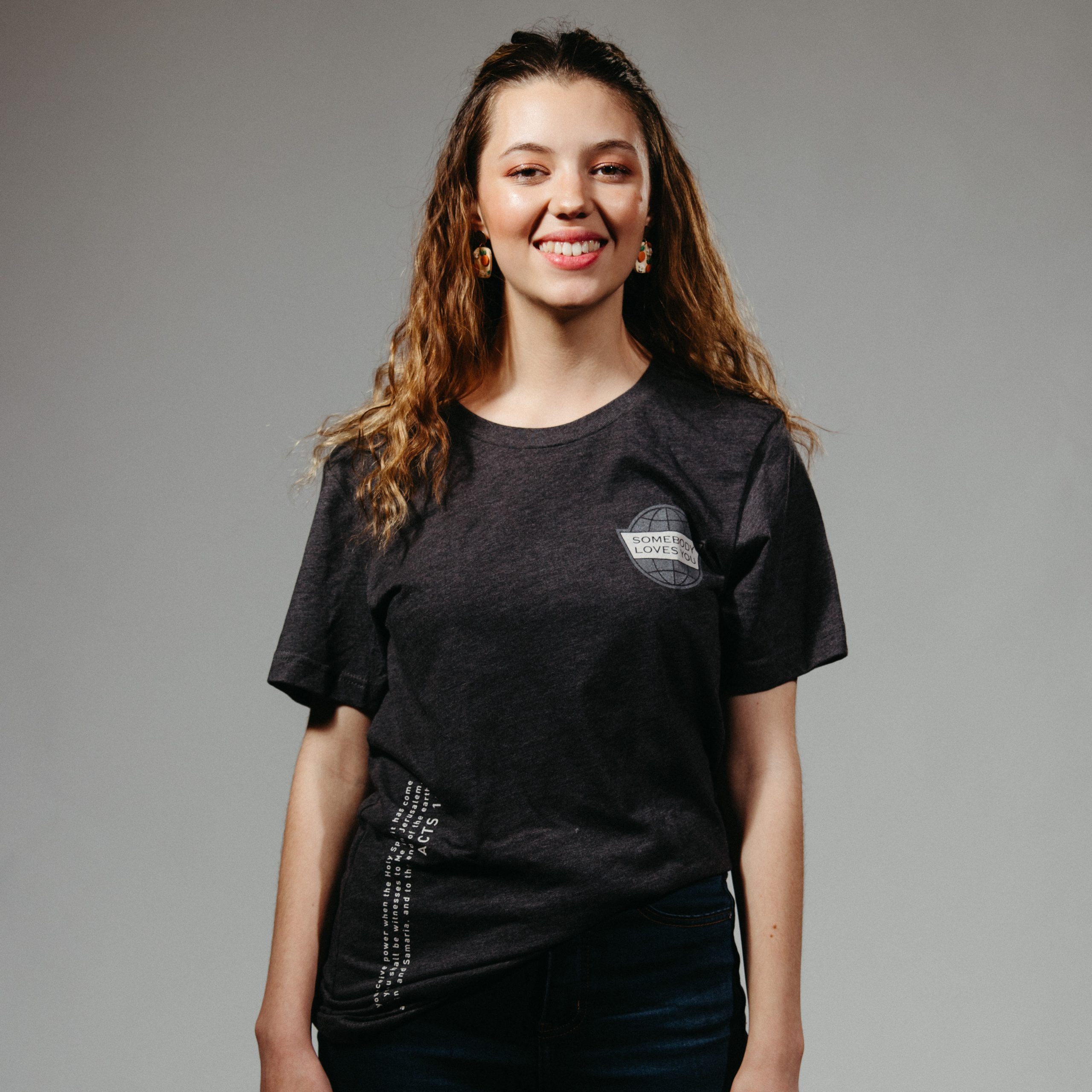 The Somebody Loves You Worldwide T-Shirt features a front screen print . The T-Shirt features our ministry Scripture Acts 1:8 But you shall receive power when the Holy Spirit has come upon you; and you shall be witnesses to me in Jerusalem, and in all Judea and Samaria, and to the end of the earth. on the side of the T-Shirt. Product with a purpose! All proceeds go to supporting Somebody Loves You Radio with Raul Ries and the teaching of God’s Word.